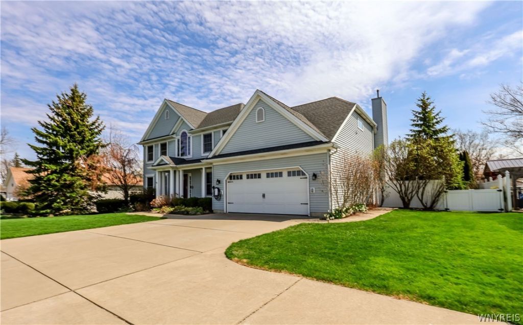 Stop your search! This exceptional waterfront home along the Great Lakes Seaway Trail delivers the perfect blend of comfort, space, and unforgettable views. Featuring four bedrooms, two full baths, and two half baths (one conveniently located on the first floor and another in the basement), this home is thoughtfully designed for both everyday living and entertaining. The spacious primary suite is a true retreat, complete with a luxurious en-suite bath offering a shower and Jacuzzi tub, along with an exceptionally large walk-in closest. Upon entry, you're welcomed by an elegant foyer highlighted by a stunning oak staircase, as well as a private den/office with custom built-ins. The heart of the home is the expansive kitchen, boasting a large island with a second oven, rich cherry cabinetry, a pantry, and all appliances included. The adjoining family room impresses with cathedral ceilings and a cozy gas fireplace, while a formal dining room and living room provide additional space for gatherings. A first-floor laundry room adds everyday convenience. Step outside to your private oasis-featuring a heated in-ground pool, double retractable power awnings, and a spacious patio surrounded by beautifully landscaped grounds, perfect for entertaining. A 12x12 powered shed adds extra functionality. The walk-out basement offers approximately 700 additional square feet of living space (not included in tax records), expanding your options for recreation or relaxation. Additional highlights include an Enphase electric car charger and a large heated garage. Recent updates provide peace of mind, including a new furnace and A/C (2023), double hot water tanks (2025), backyard concrete (2023), shed (2023), pool liner (2023), pool cover (2025), pool filter and pump (2024), garage door (2018), power awnings (2024), and driveway apron (2025). Enjoy breathtaking sunsets and panoramic views of downtown Buffalo right from your home-and celebrate the 4th of July with fireworks visible from your own front porch. All of this just a short 19-minute drive to downtown Buffalo. This is waterfront living at its finest! Offers due 4.30.26 by 12pm.